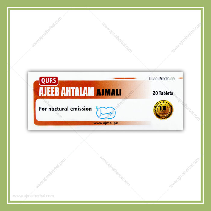 Qurs Ajeeb Ahtalaam is 100% herbal remedy manufactured by Dawakhana Hakim Ajmal Khan for Nocturnal Emission.