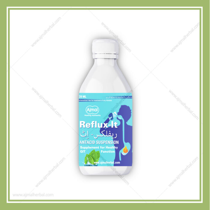 Ajmal Reflux-It syrup is fast acting suspension which is used to treat the symptoms of too much stomach acid, it helps with Stomach Upset, heartburn, and acid indigestion. Reflux It work quickly to reduce the amount of acid in your stomach to relieve symptoms.