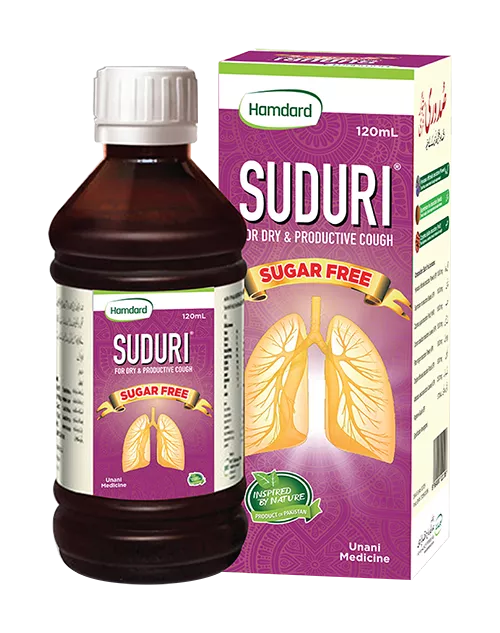 FOR DRY & PRODUCTIVE COUGH. Suduri helps to act as bronchodilator and expectorant. A specific remedy for cough and congestion of lungs. It is efficacious in cases of chronic and acute bronchitis, colds, catarrh, asthma, tubercular cough, whooping cough and post-influenzal cough.